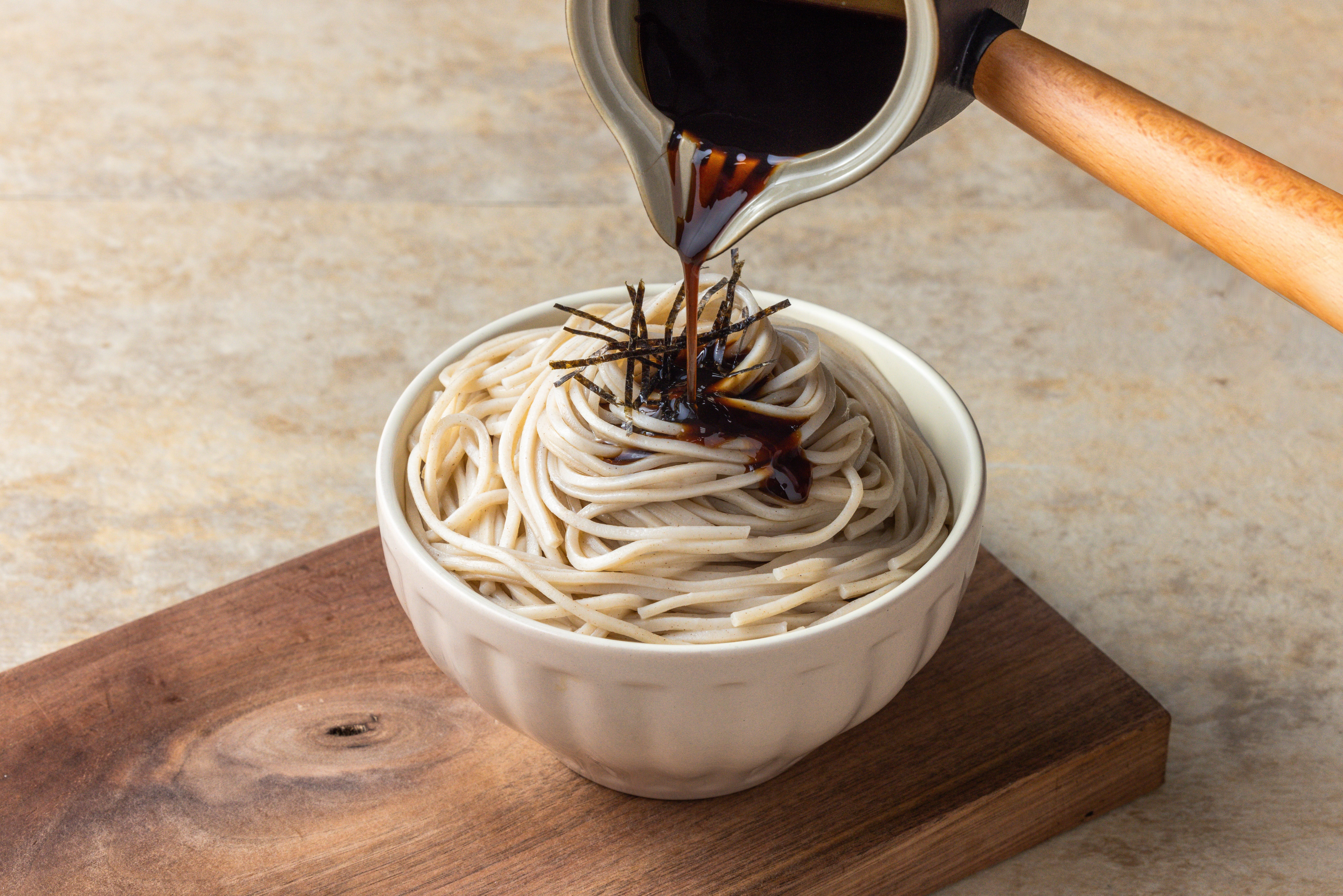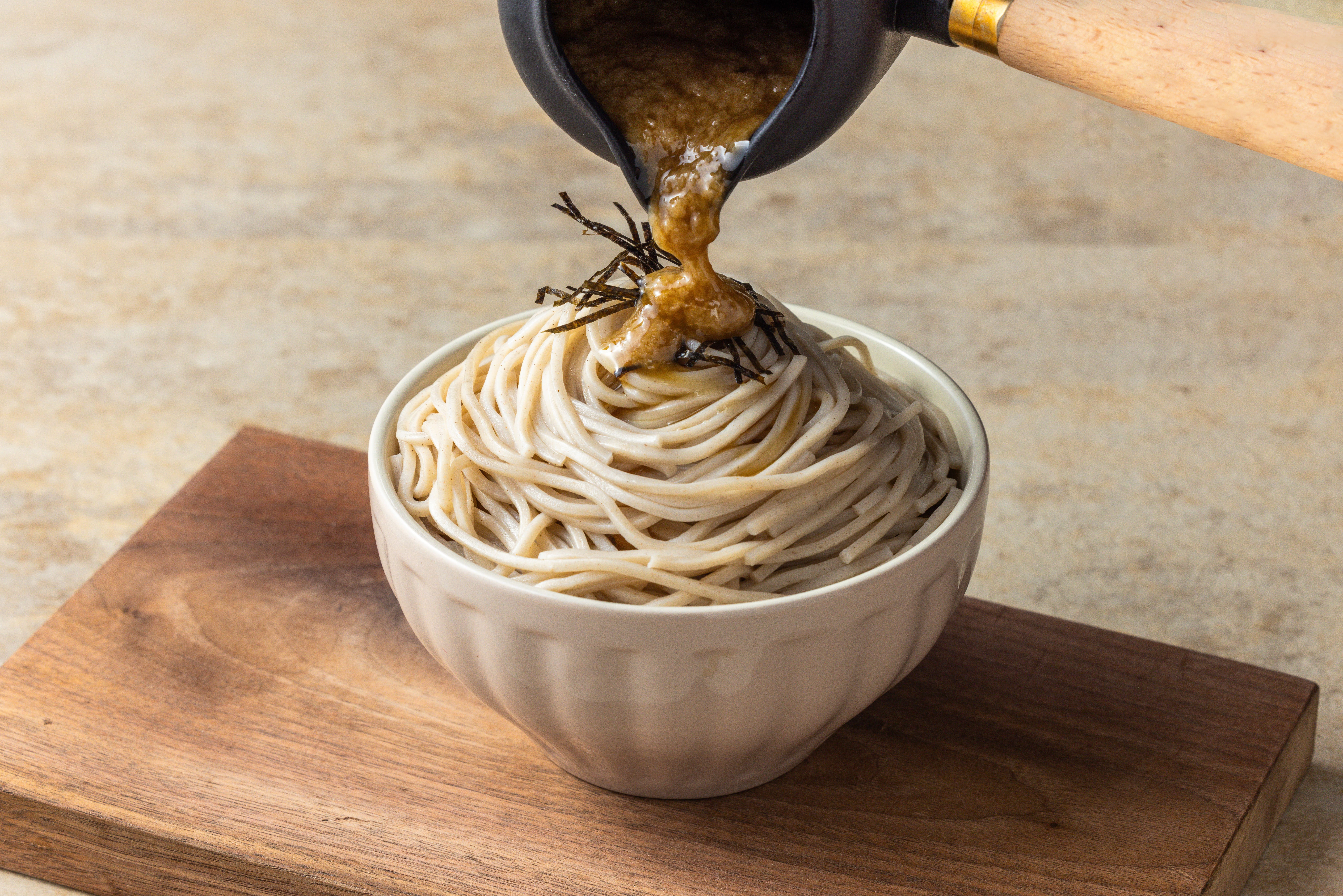 The fusion of Taiwan's indigenous traditional culture with Japanese cuisine, epitomized by the representative deity Mazu, serves as a belief and solace for the multitasking Taiwanese individuals. This time, we are privileged once again to collaborate with the renowned deity temple - Dajia Zhenlan Temple. Combining Taiwan's unique culinary flavors, including the essence of "Three-Cup Chicken" and "Aged Ginger Sesame Oil," we have created a noodle sauce to accompany Song Garden's "Soba noodles." These noodles are crafted using 100% Japanese-imported buckwheat flour, adhering to ten traditional Japanese methods, and undergo a process of low-temperature maturation and cold air drying techniques to lock in the flavor.