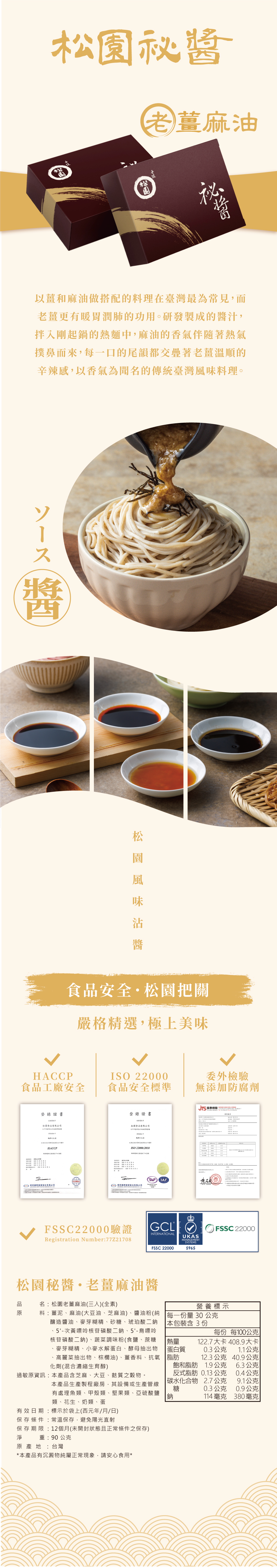 松園秘醬 - 口味的靈感來自於台灣特有的美食-三杯雞,含有淡淡的九層塔香,拌入醬汁的麵體口感更滑順,每一口都能吃得到三杯雞的風味,是素食者也能輕鬆品嘗到的傳統台灣味。