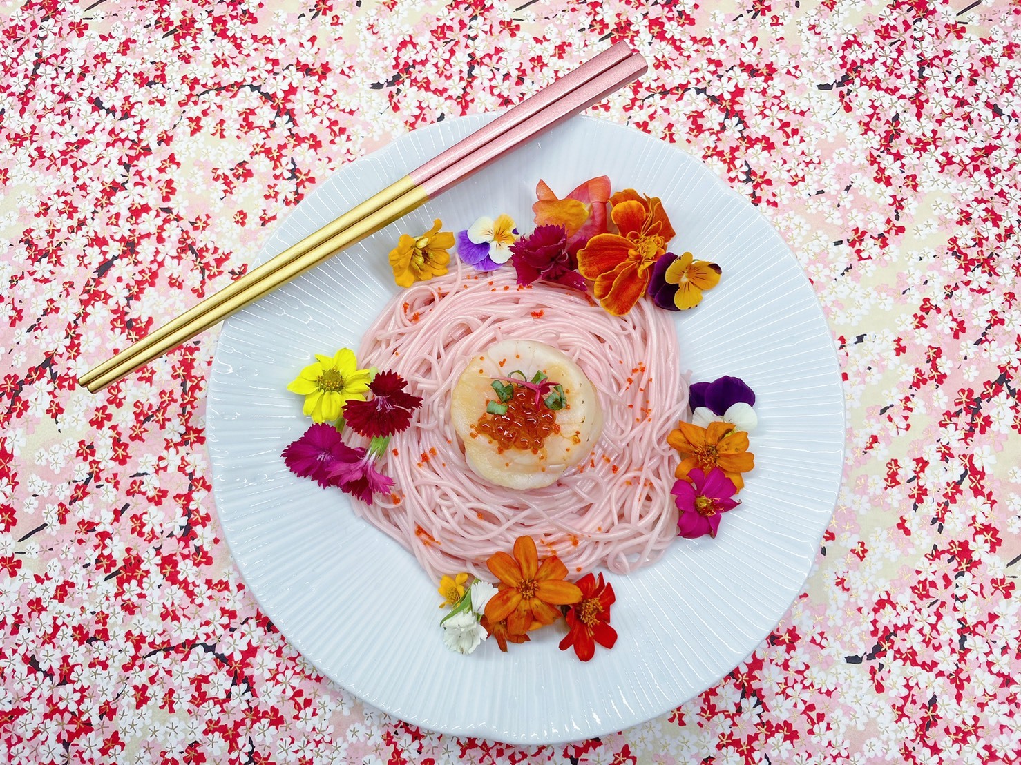 松園食品推出「極品手延麵櫻禮盒」,天然梔子花入麵條,也象徵圓滿之意,粉紅及白色手延麵條相間,搭配清風醬,滑順可口,讓追求極品的食客們念念不忘好滋味。