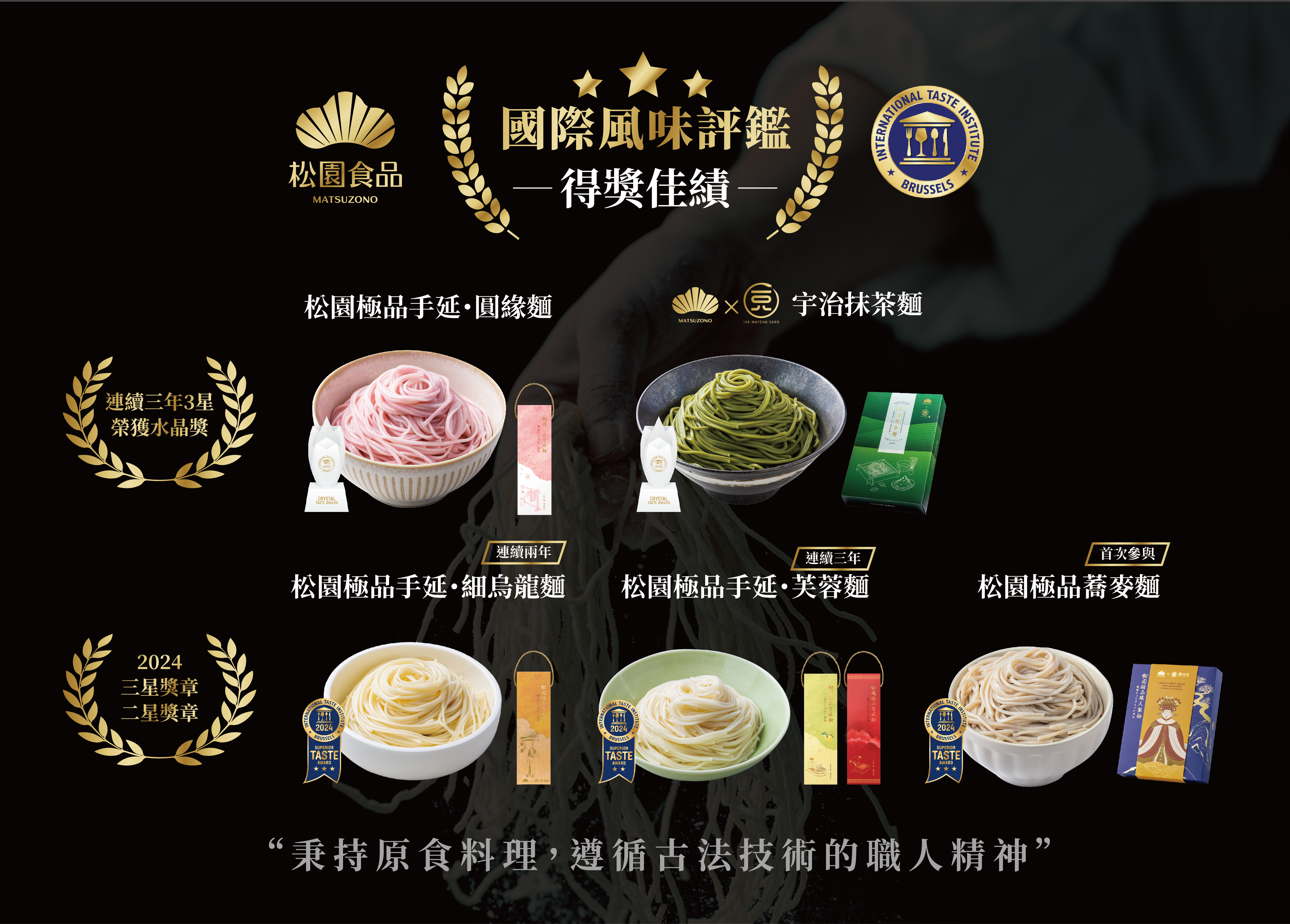台灣麵食品牌打國際盃!訴求健康麵食的「松園食品」,推出日本手延麵短短1年,以純白麵條的芙蓉麵、粉紅色麵條的圓緣麵,雙雙榮獲享譽全球的食品評鑑2021 Monde Selection金獎,在品質、包裝、創新等多面向經過嚴格的標準測試,並與全球3,000多件評比,是最具高度公信力的獎項。